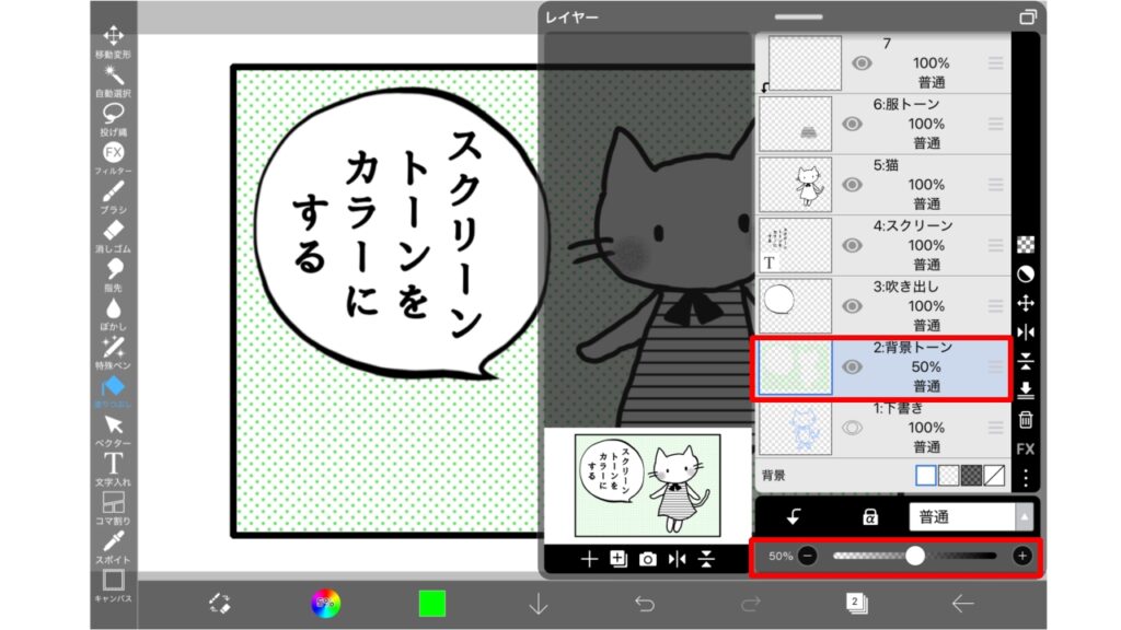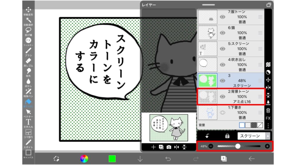 もう一つスクリーントーンの色を変える方法を説明します。