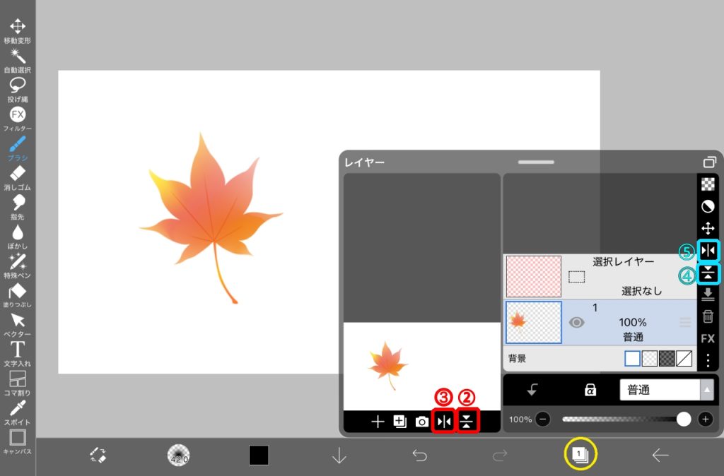 レイヤーの左右反転ボタンをクリックします。