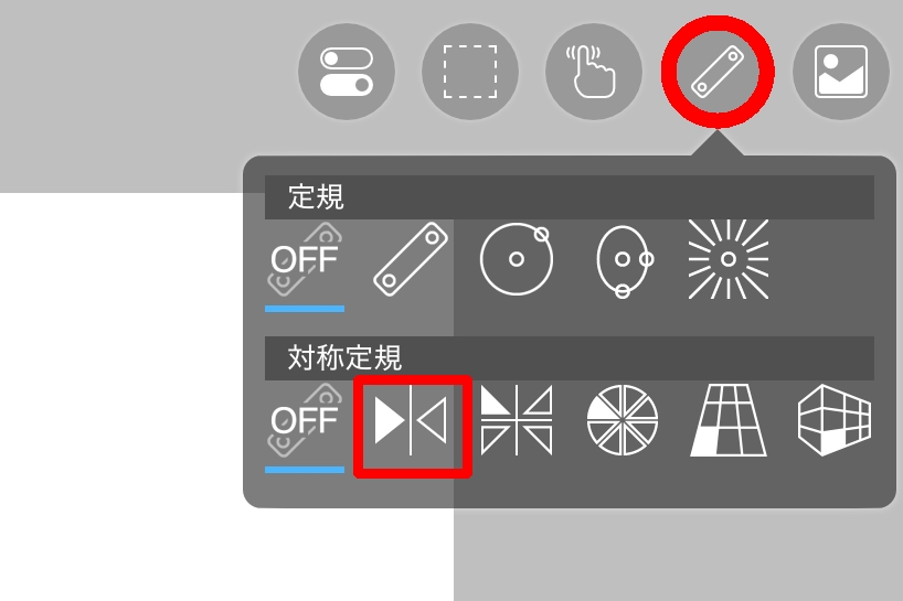 定規ツールをタップして定規ツールを開き、線対称定規をタップします。
