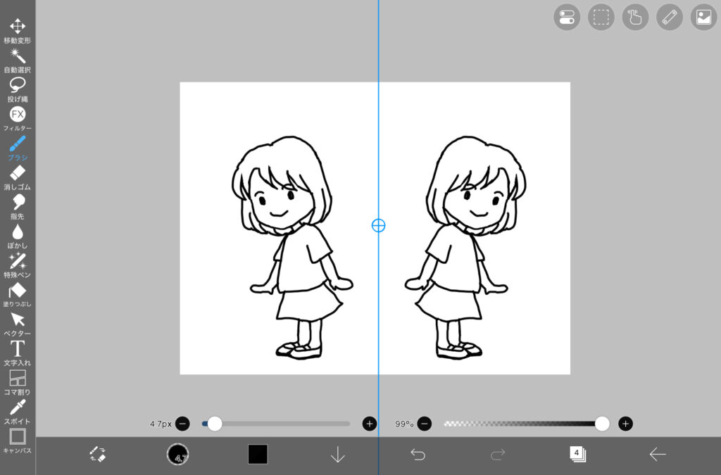 すでにイラストが出来上がっている場合の線対称