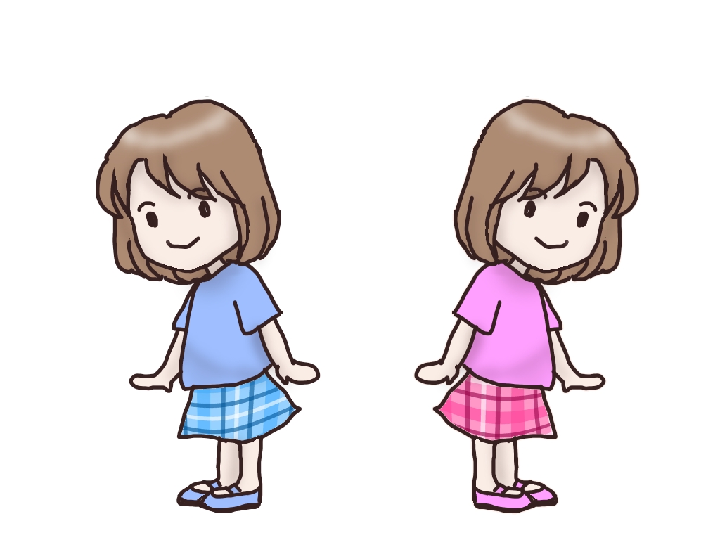 塗りつぶしは左右対称にならないため、色違いの双子コーデのようにしてみました。