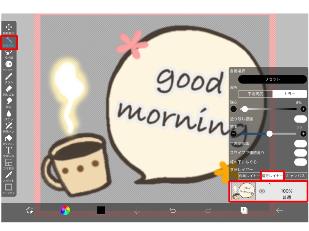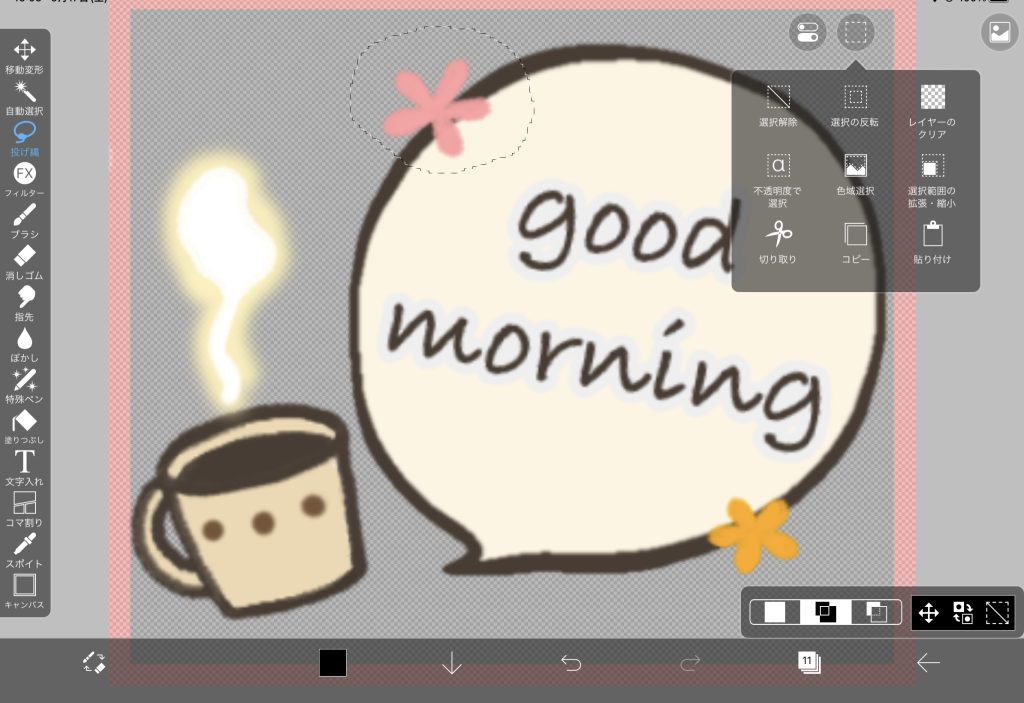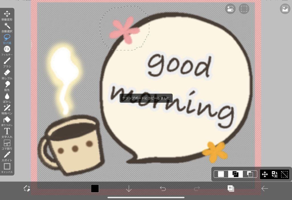 花が描かれたレイヤーを選択し、「投げ縄」をクリックします。