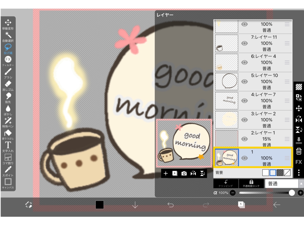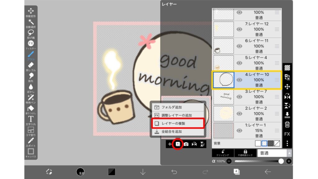 吹き出しの枠線にしているレイヤーをコピーしてみましょう。