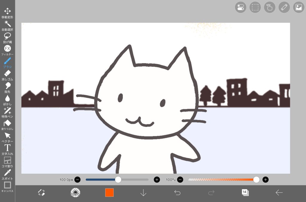 3. ペンサイズをやや大きめに(30~100px キャンパスサイズによって調整)